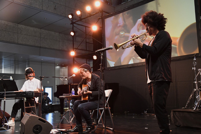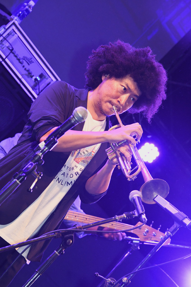 “OTEMACHI PLACE OPENING STAGE!”2日目、まず黒田卓也のファンキーなトランペットを楽しんだ。ニューヨークを中心にして元気に頑張っている黒田は、先ごろBlue Note TOKYOにも出演、僕は9月20日LIVEにも参戦させて貰った。26日はいつもより短時間だったけど、お馴染みの「Rising Sun」はじめ予定されているニュー・アルバム用楽曲などをお馴染みのユルキャラ・トークを交えながら披露。ビッグ・アップルで幅広い音楽と遊んでいるようでジャズジャズした雰囲気に拘らずファンクなテイストさえ感じさせるプログレッシヴな演奏ぶり。これからがすっごく楽しみなアーティストだ。何といってもあのヘアー・スタイルがワンダフル、ケーノー人はうっとり見惚れてしまう。