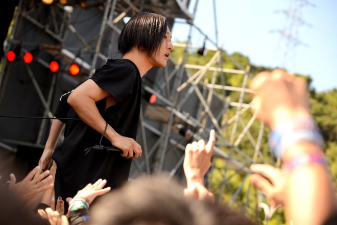 そこから間髪入れずに始まった「SHRED」、観客全員がお祭りのように楽しんだ「響く都」と続き、「世界の終わり」の前には、「今、生きている目の前の瞬間を生き延びろ!」とN∀OKIが、そして「This World」では「生きていたらいろんなことがあるけど、一緒に頑張ろうぜ」とNOBUYAが語る。そしてそのまま観客の中に飛び込んだNOBUYAは、ダイバーと接触するトラブルに見舞われたが、“これこそが生きている証だ”と言わんばかりに、流血しながらも、これまでにないほどエモーショナルなパフォーマンスを展開してくれた。