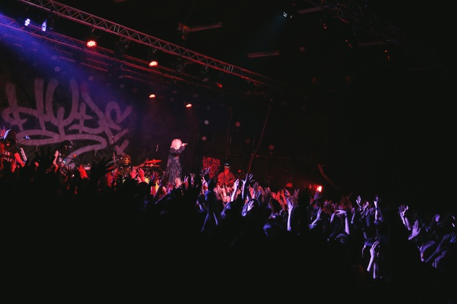 ライヴは10月24日にCDリリースされる「FAKE DIVINE」を皮切りにスタート。今年立て続けにリリースし、既にライヴアンセム化している「AFTER LIGHT」「WHO’S GONNA SAVE US」をはじめ、VAMPS時代からの定番曲「INSIDE OF ME」「DEVIL SIDE」などの楽曲を次々と披露して、どこまでも加速していく。途中のMCでHYDEはこう語った。
