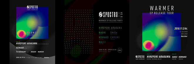Hiroyuki Arakawa自身が、1年前から数々の公演で披露してリメイクを重ねフロア映えの実績を持っており、一部のコアなファンの間では話題となっていた作品だ。なおアートワークは、SPECTRAの全作品を手掛ける、Chiho Nishizonoによるもので、WARMERという単語から、フロアがウォームアップしていく温度感を、サーモグラフィックに表現している。