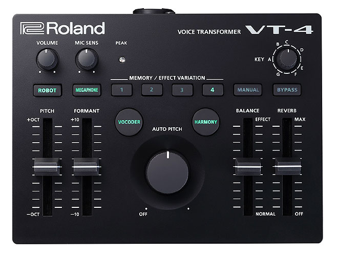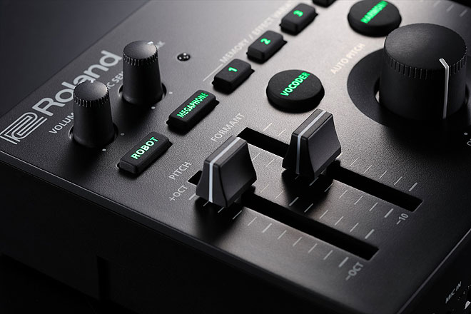 インタビュー映像でのプライバシー保護のための音声加工や、YouTubeをはじめとした動画投稿における声のキャラクターづくりなど、いまや多くのシーンが活用されているボイス・チェンジャー。音楽制作においても、音程の補正や機械的な声を作るのにも欠かせないエフェクトとして、ダンス・ミュージックやポップ・ミュージックのトレンドにもなっている。ローランドでは、ライブでの演奏性を追求した音楽制作ツール「AIRAシリーズ」のラインナップの一つとして、2014年にボイス・トランスフォーマー「VT-3」を発売。マイクを接続して、ピッチ(音程)とフォルマント(人の声を特徴づける周波数成分)を調整し、カンタンに音声加工ができる高性能のボイス・チェンジャーとして、高い評価を得ている。