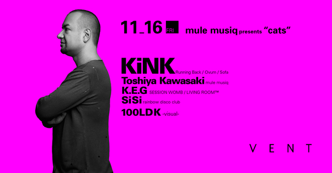 この度KiNKが登場するのは、日本が世界に誇る名レーベル“mulemusiq”主催のパーティ<cats>。ブルガリア出身のKiNKは、クラシックなハウスサウンドからアバンギャルドなサウンドまで非常に高いレベルでブレンドした作品を、Rush Hour、Ovum、Macro、Modnight Shiftからリリースし、ディクソンなどのトップDJに熱烈にサポートされてきたのはご存知の通り。