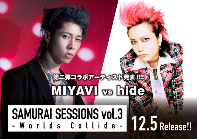 MIYAVIが12月5日、対戦型コラボレーション・アルバム『SAMURAI SESSIONS vol.3 – Worlds Collide -』をリリース。本作の第2弾参戦アーティストが発表された。