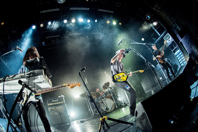 「いっそUFO」では、神経をかき回すようなハイトーンのギターリフ、ド迫力な演奏から、軽快なギターのストロークへと変化して、モータウンサウンドばりのポップな展開に。そして再び轟音に戻るなど、つかみどころのないプログレッシブなアレンジに観客は圧倒されている様子だ。スケールの大きく優しいフォーキーなメロディがこの日演奏された曲の中では新鮮に響いた「English man」から、「ヴィーナスの恋人」へ。ギターを弾きながらステージを縦横無尽に動き回ったベントラーがキーボードにチェンジすると、流麗なフレーズを中心に、バンドは一体となり白熱のアンサンブルを聴かせて、ステージを後にした。