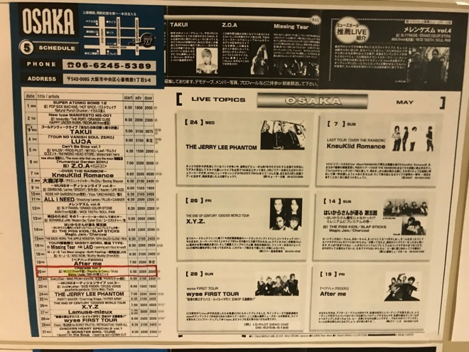 ▲2000年5月当時の心斎橋MUSE HALLライブスケジュール