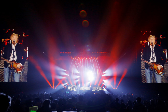 2曲目が終わったところで「コンバンワ、トーキョー。タダイマ!」と日本語で挨拶。4曲目、ウイングス時代の曲「Letting Go」では、ウイングス以来の導入となったホーン・セクションがアリーナの客席の中に登場し、圧巻の演奏を聞かせた。続けて最新アルバムから、いじめに悩む若者を勇気づけるような「Who Cares」、ダンス・チャレンジ動画も話題の「Come On To Me」を披露。“イチバン”という日本語を歌詞に入れた新曲「Back In Brazil」に使われてる“イチバン、イチバン、イチバン・バン・ババンバン!”というフレーズを、「Come On To Me」のイントロに加える等、日本ならではの演出で楽しませ、前半のクライマックスを迎えた。