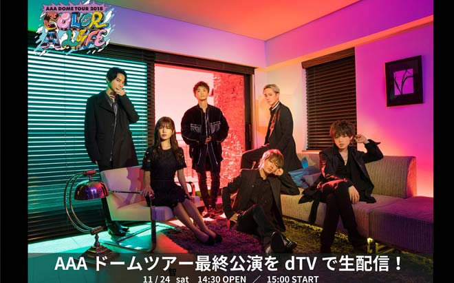 AAAが11月24日に福岡ヤフオク!ドームで開催する<AAA DOME TOUR 2018 COLOR A LIFE>最終公演の模様が、dTVでライブ生配信されることが決定した。