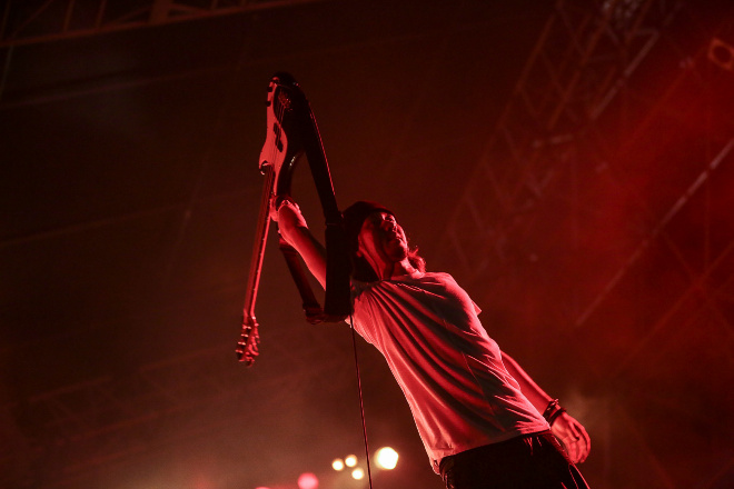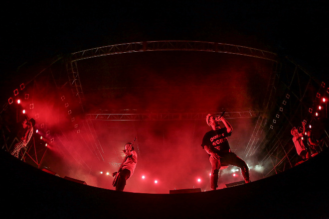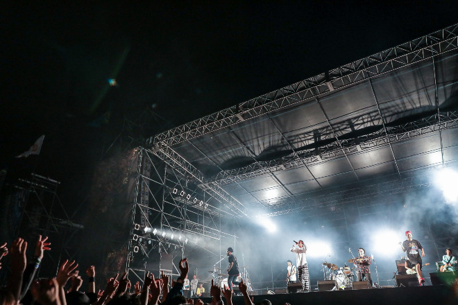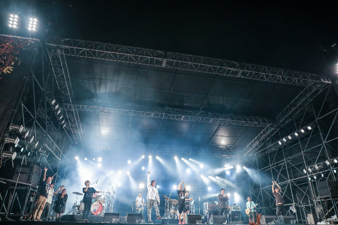 こうした聴かせ場も作るが、やっぱりORANGE RANGEである。HIROKIの「ガンガンいっちゃっていいですか。明日にバトンを渡せるように最後までイケますか。汗かいてきましょう!」と威勢のいいMCから突入するのは「チラチラリズム」。YOHがファンキーなベース・ラインを刻めば、うねりあるギター・プレイを決めるNAOTO、ちょいとエッチなフレーバー漂うリリックで熱くさせる3MC。さらにキラー・チューン「イケナイ太陽」と「キリキリマイ」という怒涛の攻め。ファンからの声が小さければ「このボケーッ!」と叫ぶYAMATO。30代になっても、激しいライブ・パフォームや煽りを入れまくりのやんちゃなステージを繰り出すORANGE RANGEだった。