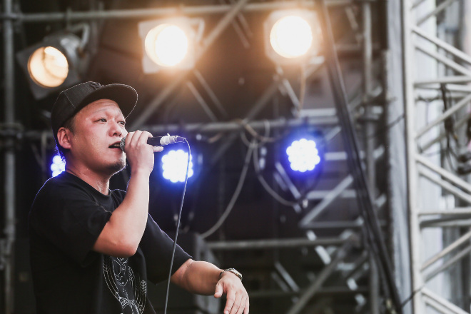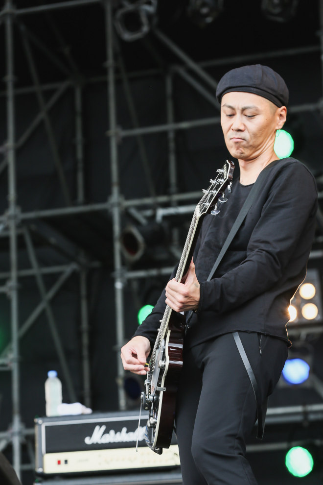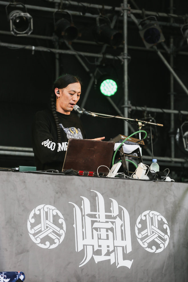 後半、エレクトロを用いたダンス・ロック調の「Ride with us」、ライヴで抜群に映える「Rock’n Roll Monster」をやり終えた後、Kj(Vo/Dragon Ash)がステージに登場。山嵐とDragon Ashは共に90年代からミクスチャー・ロックを牽引し続ける戦友とも言える関係性だ。その音楽的絆を証明するように、ラストは1stアルバム収録の「BOXER’S ROAD」をKjとコラボするスペシャル・バージョンでプレイ。ステージ上のメンバーの動きが激しくなると、それに比例して観客も汗だくになって騒ぎまくり、ミクスチャー・ロックの真髄を叩き付けるダイナミズムにひれ伏した。「山嵐、かっけーだろ?」と最後まで愛とリスペクトに満ちたKjの発言にも心が温まる思いだった。