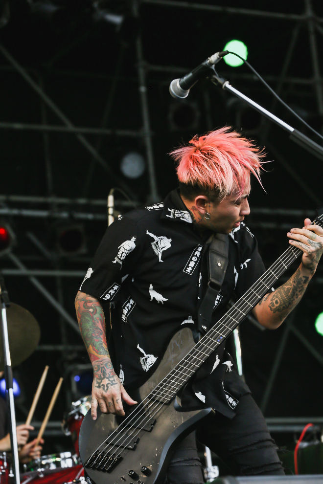 そのダークな曲調を引き継ぐように「CROWS」(ライヴでやるのは少しレア!)も好反応で受け入れられ、その活気漲るマングースSTAGEの様子に血が騒いだのか、SATOSHIは「仲間に入れてくれ!」と言った瞬間に観客側に飛び込んでクラウドサーフするハジケっぷり。ステージに戻ると、「コンタクトが取れました」と言って場を和ませていた。