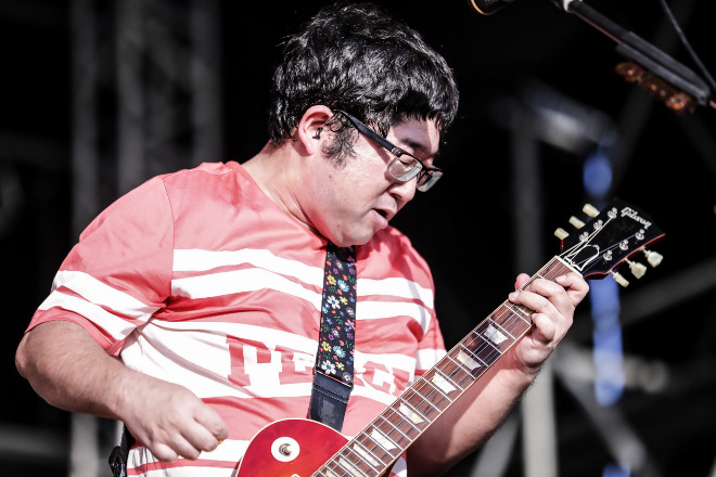 山口が言葉で観客を煽れば、近藤洋一(B,Cho)はメロディアスでグルーヴィなベースプレイで、そして木内泰史(Dr,Cho)は、タイトかつラウドなビートで観客を煽る。そうした2人のプレイに山口まで煽られたのか、「ギターソロ、弾いてもいいですか、みなさん? 弾いてもいいすかっ!?」と叫び、大歓声を浴びながらソロを弾き終えると、「オレ、めちゃめちゃギター上手いんですからっ!」と、もう何でもアリのサンボ・ワールドが渦を巻く。その渦に、遂に上空の雨雲までもが巻き込まれ、その切れ間からマングースSTAGEに光が降りそそいだ。