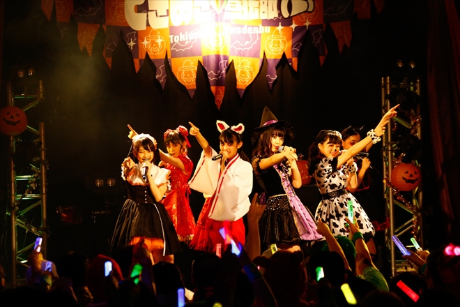 11月3日には柏PALOOZAで<日にち外れのときめき♡ハロウィンライブ>を「スウィート編」と「ビター編」の2部に渡って開催。「ビター編」ではゴシック調にアレンジしたSEに乗り、仮装したメンバーが1人ずつ踊りながらステージへ。“世界の美少女おばけ”がテーマで、小泉遥香はチャイナ服、杏ジュリアは小悪魔、辻野かなみはシスター、吉川ひよりは犬のダルメシアン、藤本ばんびは妖狐風の巫女、坂井仁香は魔法使いに。衣裳は「スウィート編」と同じだが、傷が入ったりのホラー風メイクとなっていた。そして、ドライブの効いたエレクトロチューン「DEADHEAT」から、ノリは良くもまさにビターテイストの3曲を続けた。