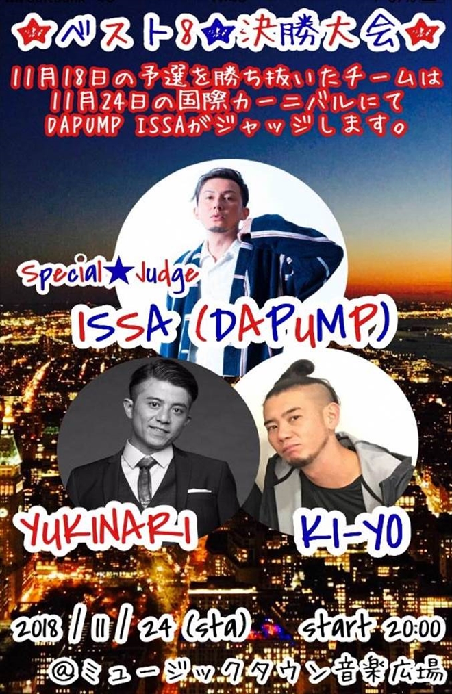 就任式が行われる<沖縄国際カーニバル2018(ゲート2フェスタ)>では、「U.S.A.ダンスコンテスト」と題したダンスコンテストイベントも開催され、11月18日の予選を勝ち抜いたチームは11月24日の決勝大会に出場できる。決勝大会の審査員にはISSAの他、元メンバーのYUKINARIも参加。注目度の高い大会となることが予想される。