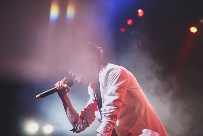 ライブの中盤では、雪見が色気溢れる息づかいで魅せた「マリオネットラヴァーズ」や、あげいんと雪見の“あげゆき”コンビによるオリジナル曲「C-caste」、あげいんが熱唱した「Mr.Fake」などソロコーナーを展開。Rimと3部もコールアンドレスポンスで盛り上げた「ロキ」で一体感を生み出すと、3部の「神教⇒Exclamation!」ではファンが頭を振り乱すヘヴィーなライブに。Rimはスタンドマイクを握って歌い上げた「end tree」で魅了。あっという間に差し掛かったラストスパートでは再びメンバーがソロでステージに立ち、最後はアットホームなトークで笑いを交えると、4人でポップに披露した「weeeek」で会場を4色に彩り本編を終えた。