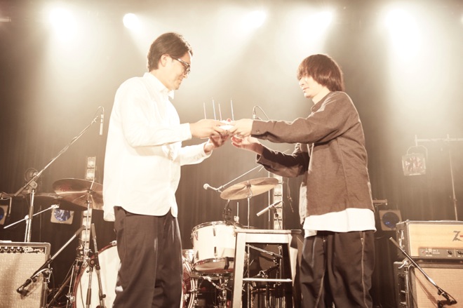 木下の<生誕祭>の話だったっけ(笑)。木下、誕生日おめでとう。MCでも言ったけど、現時点で俺たちのキャリアはもはや短いとは言えないわけで、もうこうなったらやたら長くやってこうぜ。極細でもなんでもいいから長生きしながら。そりゃあ良いほうがいいけど、たまには悪くてもいいやもう。とにかくいっぱい音楽つくろうぜ。