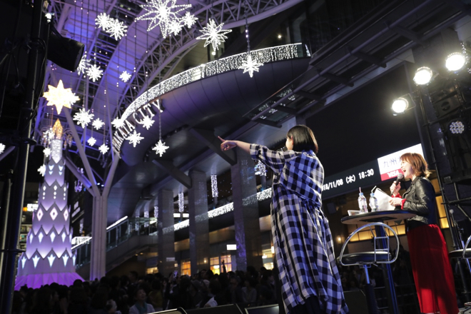 クリスマスツリー点灯前のトークショーで絢香は、16歳から約1年半、作曲の勉強のため毎週末通った福岡を大好きだと話し、博多弁を披露する一面も。クリスマスの思い出やエピソードを聞かれると「毎年翌日の26日は武道館でライブがあるので、クリスマスはささやかに家族で過ごしてます」と話し、11月14日に発売されるニューアルバム『30 y/o』、12月16日から始まる全国ツアー<絢香 “30 y/o”Tour 2018-2019>への想いを語った。