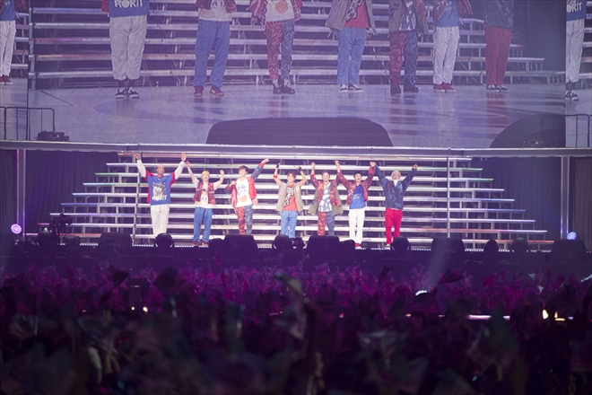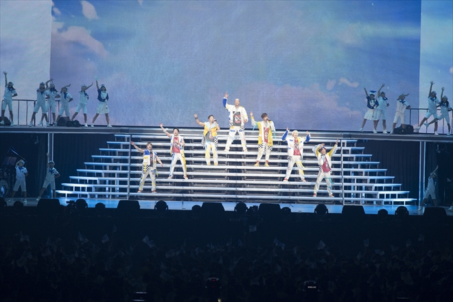 片寄涼太と数原龍友のアカペラから幕をあけた「Always with you」では、水兵をイメージした衣裳を身に付けた子供たちと共にピースフルなステージを繰り広げる。続く白濱亜嵐がDJを担当した「Sing it Loud」ではダンスチームがアクロバティックなダンスを披露し会場を沸かせた。そしてメンバーはトロッコに乗り込む。「Love You More」ではそれぞれのトロッコに女性ダンサーが乗り込み愛しさの詰まったバラードを届け、「花」ではキッズダンサーが登場するという幅広い魅力でオーディエンスを釘付けにした。