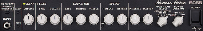 「Nextone」は、真空管を採用したギターアンプの内部回路の複雑な振る舞いをBOSS/Roland独自のアンプ設計手法である「Tube Logic」によって真空管を使わずに再現したギターアンプ。音の温かみや抜けの良さ、ピッキングに対するレスポンスや自然なコンプレッション感、音量を上げたときに得られる音の艶や音圧感など、真空管アンプならではの表現力をこだわりの「クラスAB方式」アナログ回路設計によって実現した。