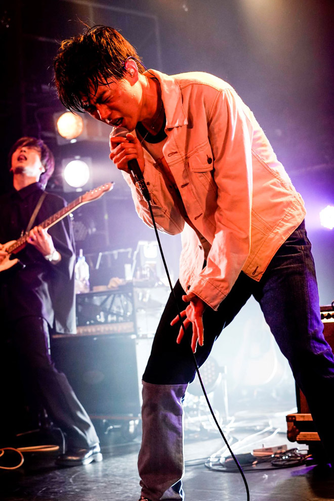 「おととい、ここ(LIQUIDROOM)でクロマニヨンズのライブを観てたんですよ。うおーーー! マーシー! ヒロト! ってなりながら同時に、明後日はあそこに自分が立つんかー…って思い。あんな風に上手なコールアンドレスポンスはできないけれど、こっちはこっちで楽しいしいいですよね」と、憧れの存在と同じライブハウスのステージに立っていることに感慨深げな様子を漂わせつつ、本日ひとつめの嬉しいサプライズとして、菅田が愛聴していることを公言するあいみょんの「ふたりの世界」のカバーを披露。女性目線の曲も歌ってみては、という周囲の女性スタッフからのリクエストに応える形で今回のカバーをしてみようと思ったとのことで、あいみょん特有の語りかけるような愛らしい1曲を非常に表現力豊かに歌い上げる。続いて、今日も会場でライブを観ているはずの菅田の友人が最近よく聴いていると言ってきたというエピソードを混ぜつつ「ばかになっちゃったのかな」へ。「奴は恋でもしているんでしょうか?」とステージ上から友人へとメッセージを送る姿も、ライブハウスならではの距離感といったところで非常に微笑ましい。その後、さらにライブの中盤では、自身がミュージックビデオにも出演した盟友・石崎ひゅーい「ピリオド」のカバーを用意。菅田将暉の役者としての側面と、ミュージシャンとしての側面が見事に融合したかのようなこのカバーには、聴いているこちらも身震いせざるをえなかった。