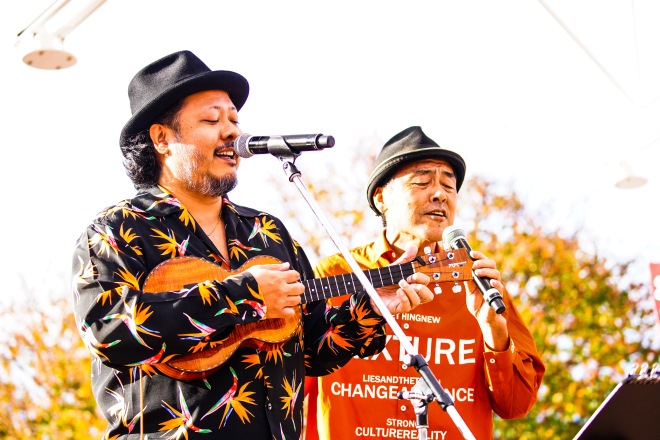 また、後半終盤にはキヨサクによるウクレレの弾き語り・UKULELE GYPSYのライブが行われ、オリジナル曲、さらにMONGOL800の名曲「あなたに」や「小さな恋のうた」を披露。アンコールではマーキーも参加して加山雄三の「お嫁においで」をセッションするという今日だけの大サービスも! 晩秋の会場には日差しも差し込み、ウクレレの音色と歌声が作り出す温かな時間が心を満たして、イベントはグッドムードのなか幕を下ろした。