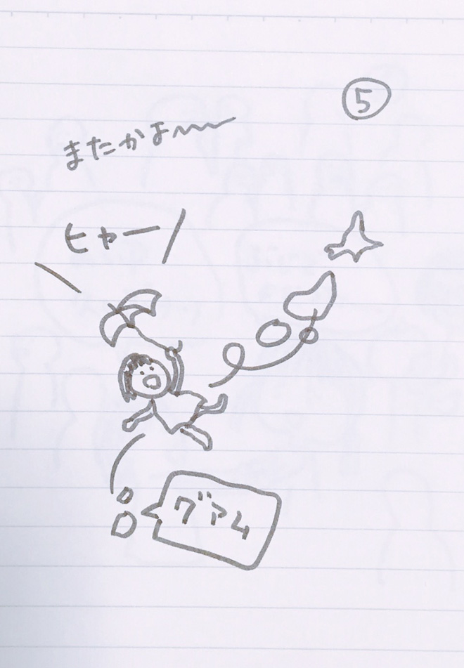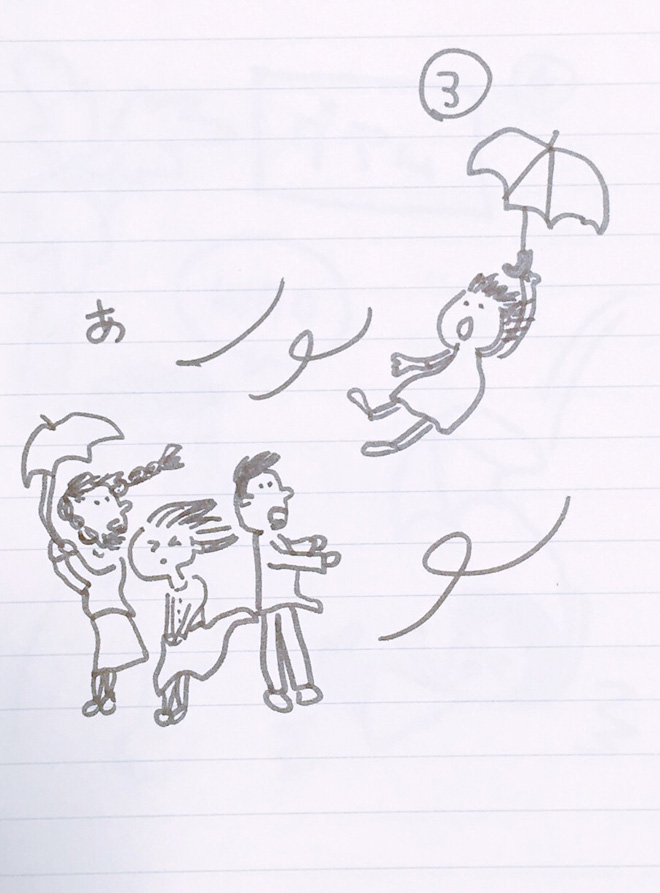 みちるは傘をさしていて飛ばされた