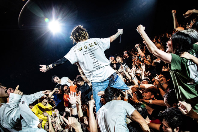 後半は「Friends」、「Leaf」と続き、「次の曲はずっとやりたかった、ライブハウスの曲」とJESSEが前置きし「Place of Fire」、そして本編最後は「SUNTOWN」をプレイ。全ベクトルにエネルギーを解き放つ曲調は、新たなアンセム・ソングと言っても過言ではない求心力を誇示していた。
