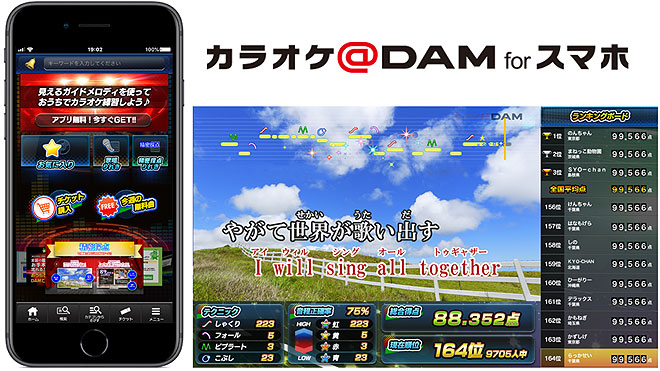 いつでもどこでもスマホでカラオケを楽しめる時代が到来。カラオケDAMのハイクオリティな音源と映像を使い、精密採点機能まで楽しめる本格的な家庭用カラオケ「カラオケ@DAM」のスマートフォンアプリ「カラオケ@DAM for スマホ」が登場した。13万曲以上の楽曲を揃え、iPhone版が12月、Android版が2019年2月よりサービス開始となる。