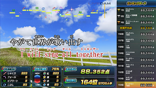 ▲カラオケ店で楽しんでいた精密採点を、見えるガイドメロディー付きでおうちでも!