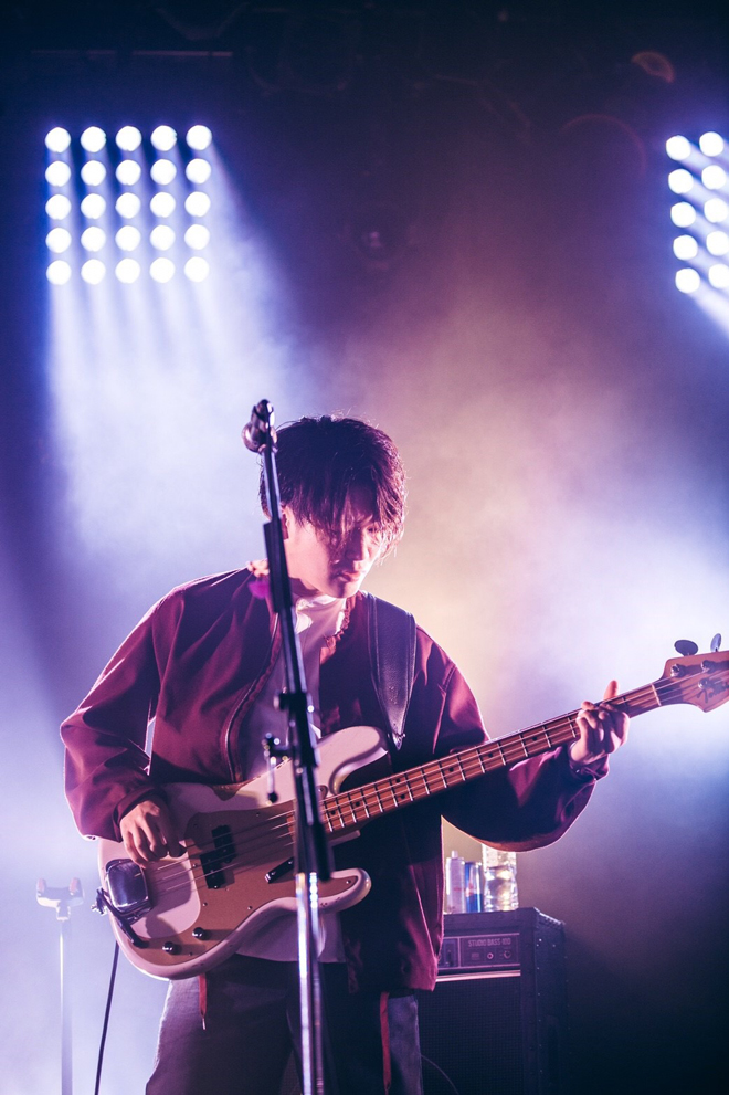 その後は「Not Too Late」「Liberty」「Dance With Misery」といったブラック・ミュージックに通じる洗練感をフィーチュアしたナンバーが相次いで演奏された。突き抜けるようなファルセットも交えて抑揚を効かせるHIROSHIのボーカル、洗練されたバッキングとテイスティーなギター・ソロのマッチングが印象的なWATARUのギター、弾力感のあるフレージングでグルーヴを牽引するSHUNのベース、曲調に合わせたダイナミクス・レンジの広さが光るHAYATOのドラム。高度なスキルを備えた四人が奏でるサウンドは本当に上質で、ブラック・ミュージック系に必須ともいえる官能的な味わいを纏っている辺りは実に見事。今回のツアーを経て、FIVE NEW OLDの表現力に一層の磨きが掛かったことを感じることができた。