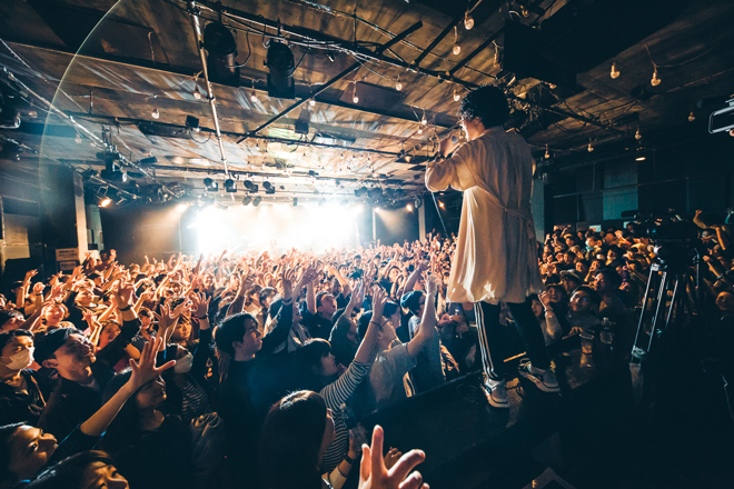 彼の言葉に、客席からは温かみに溢れた拍手と歓声が起こった。その後のコール&レスポンスや後半のテンポアップに合わせてメンバー全員が激しくパフォームする構成で、オーディエンスを大いに沸かせたのもさすがの一言。オープニングから僅か3曲で場内を一つに纏めたことに圧倒された。