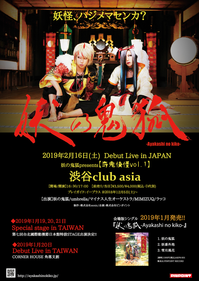 妖の鬼狐は、「第七回台北國際動漫節」という台湾のイベントから始動。また、翌日には台北市内のライブハウスCORNER HOUSEにてデビューライブを敢行する。