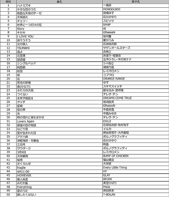■楽曲別ランキング TOP50