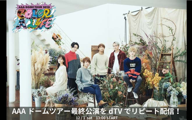 AAAの4大ドームツアー<AAA DOME TOUR 2018 COLOR A LIFE>福岡最終公演の模様が、dTVにて12月1日に配信されることが決定した。
