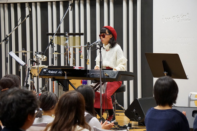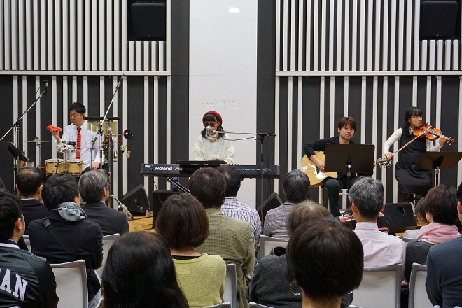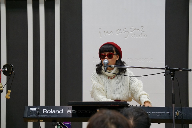 サングラス姿でのパフォーマンスがスティービー・ワンダーを彷彿とさせる彼女。これまで代々木体育館やアメリカのアポロシアターなど、様々な場所でライブイベントを行なってきたが、単独でのライブは今回が初。緊張感の漂う中で、アンコールを含む全10曲のライブパフォーマンスを披露した。