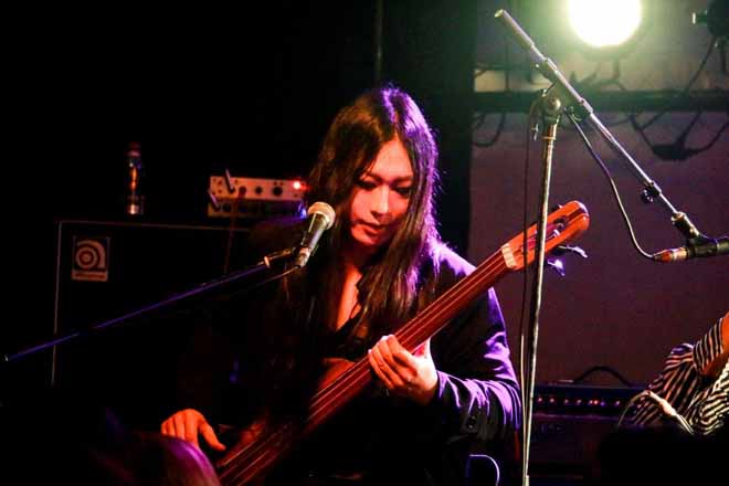 熱は冷めぬままに二曲目の「掌ドロップ」、力強く色気を帯びた「ワスレナグサ」に続き、唯と柊のギターが絡み合う「hollow」へと展開を広げ、激しさと切なさは会場の隅々まで染み渡った。「空間」を支配する将のドラムを合図にすべての楽器の音が集まり、それが音楽となり曲となり、最後には感動へと変わる。その刹那にumbrellaという四人がさらに輝いた。