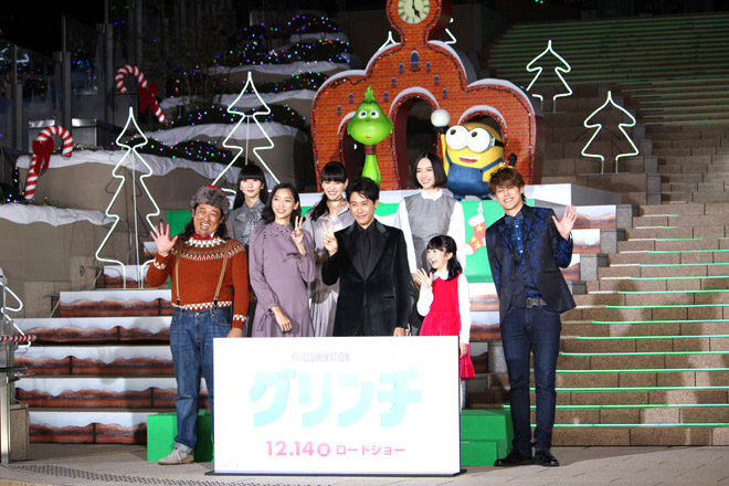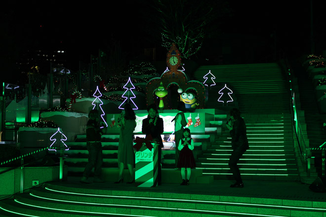 同映画の主人公が、クリスマスを盗もうと計画するひねくれ者・グリンチであることから、「わたくしが今日は日比谷のイルミネーションを盗んでやろうと思うんですよ!」と大泉が宣言すると、点灯ボタンが登場。大泉の「メリー」の掛け声に登壇者が「グリンチマス!」と応えるとイルミネーションが点灯し、会場は緑色の“グリンチカラー”に染め上げられた。
