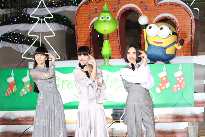 Perfumeが11月26日、東京・東京ミッドタウン日比谷 ステップ広場にて行なわれた<映画『グリンチ』 ジャパンプレミア<プレミア点灯式>>にサプライズ登壇した。