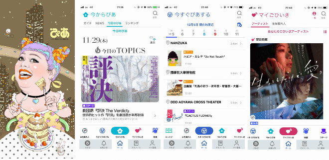 6月末のテスト版配信開始以来、大きな注目を集めていた「ぴあ」アプリ。“いま”“ここ”で行われているイベントの情報が一覧表示される独自の検索機能「今すぐぴあする」や、エンタテインメント情報のリマインダーや鑑賞記録をチェックひとつで作成できる「マイノート」、好きなアーティスト/俳優/監督などの最新情報を見逃すことなくチェックできる「マイごひいき」といった新機能に加えて、往年の『ぴあ』ファンにはおなじみの読者投稿コーナー「はみだしYOUとPIA」や、映画館や美術館の入場料金割引クーポン「マルぴ」もデジタルならではの機能や利便性を加えて復活した。