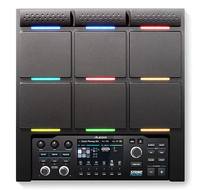 RGBバックライト、サンプラー、ルーパー、2IN/2OUTのオーディオインターフェイス機能、USBメモリからのサンプルロード機能、4.3インチの高輝度ディスプレイ搭載の9トリガーパーカッションパッド「Strike MultiPad」がAlesisから登場。12月24日に発売される。