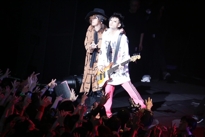 「年季の入った悪い感じを楽しんで!」と清春が煽り、「See A Pink Thin Cellophane」と「FREEZE」で妖しくフロアを揺らせば、本編序盤にして「ID POP」「WHITE HELL」「AMARYLLIS」などの必殺のナンバーが畳み掛けられるゴージャスな展開。1曲演奏されるごとに、フロアの熱気は上昇してゆく。