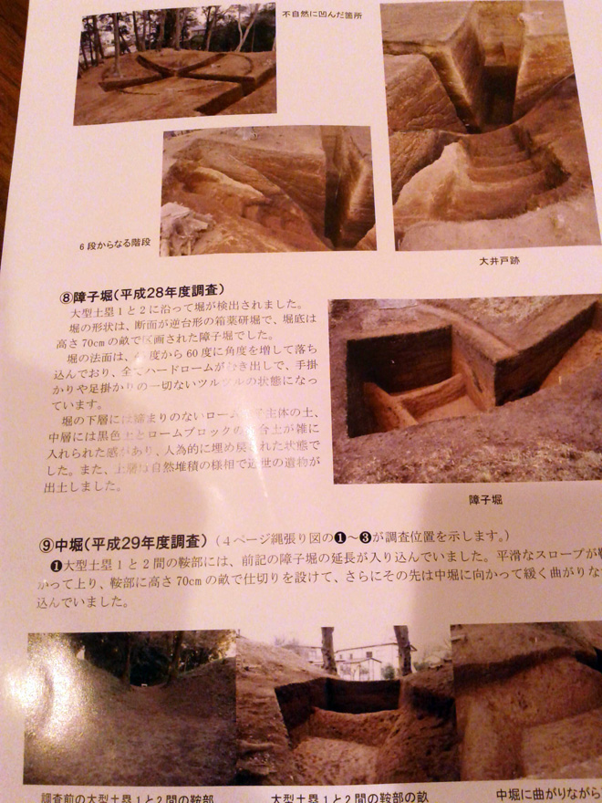 何度となく発掘調査を繰り返した滝の城であるが、障子堀がこれだけ見つかっても、また埋め直して現在に至る。これには理由があり、それをキープして見学出来るようにするためにはそこから更に崩れないような処置を施さないといけないということ。これだけ急斜な堀と土塁だとそれこそ子供が落ちたら本当に危ない。周りに柵も必要となる。こういうことにはまた大変な資金がかかるのである。こういう歴史的なことに国がもっと動いてくれたらどんなに良いだろうか。観光客も増えて街も活性化するのにな。発掘してもまた埋め直さなければならないなんて、まさに好きだけど売れてほしくないから周りに伝えないっていう私のファンと同じではないか!