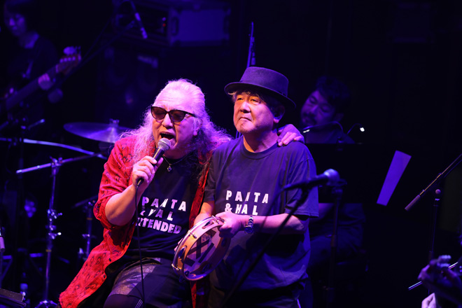 当時のメンバー今剛、平井光一、浜田文夫を迎えて『マラッカ』『1980X』フィーチャーしてのステージ。このメンバーが揃うのはHAL解散以来、37年振り。他のメンバーはPANTA&HAL未体験の若手、西田修太/GTR、岩崎なおみ/BS、柏倉隆史/DS。そしてHAL解散後、PANTAサウンドを支えてきた盟友の菊池琢己/GTR、中山努/KBDがしっかりと位置する。2枚のアルバムのプロデューサーでこの日のステージのディレクターの鈴木慶一曰く、EXTENDEDとは拡張版、三世代のメンバーの融合であるとのことだ。11月3日Billboard Live TOKYOでのLIVEにエキサイトした。