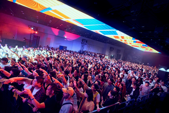 2017年に続いての開催となった<SOUND JUNCTION>は、4方向からアーティストに囲まれてライブが楽しめるというユニークな演出で人気のイベントだ。今回は初顔合わせとなるきゃりーぱみゅぱみゅ、向井太一、RHYMESTER、Survive Said The Prophetの4組が、2部構成の華やかなパフォーマンスを繰り広げた。