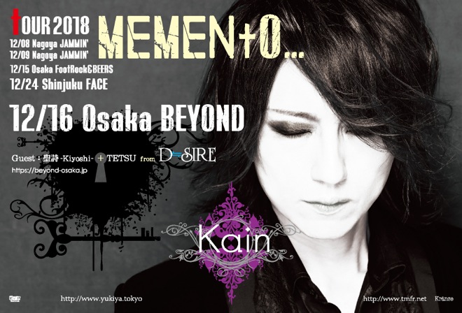 Kαinは2017年11月、結成10周年記念赤坂BLITZワンマンにてオリジナルメンバーであるギタリストの脱退をうけて活動休止、2018年7月の東名阪ワンマンツアー<CARPE DiEM>にて活動再開を果たしており、連動した意味合いを持つ東名阪ワンマンツアー<MEMENtO…>を本日12月8日よりスタートする。