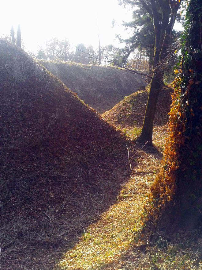 現在は絡手口にある駐車場から見学コースが作られているが、ロケで訪れた時に国道からこの絡手口に曲がれず通り過ぎてしまった。すぐ次の角を曲がったわけだが、そこから三ノ郭、西ノ郭の外堀を縁取るように走った。これがまた凄いクオリティなのだ。堀こそ若干埋まってしまいその深さは浅くはなっているがその幅は健在、そして土塁の高さ、もちろん保存状態、三ノ郭と西ノ郭の間にある堀切のVの字の見事さ、まさにTHE BLACK CROWESのアルバム「amorica.」と同じVラインである。あのハミ毛と土塁の雑草がどうにもこうにもリンクしてしまう。車で来られる場合は是非この道を走って見てVを感じてほしいと思う。