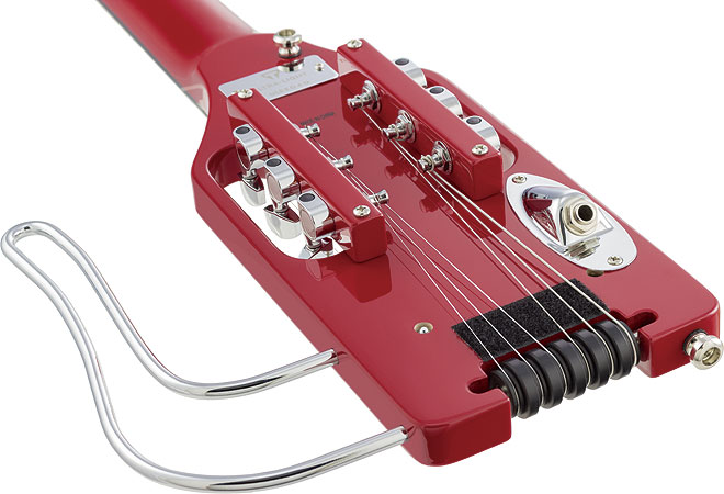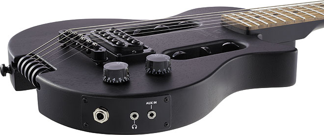 シングル・サイズのデュアル・レール・ハムバッカー・ピックアップを搭載したトラベル・エレクトリックギターで、ボディ裏側にあるアウトプット・ジャックからアンプへの出力が可能。お手持ちの外部ギター・アンプなどに接続することで、通常のエレクトリック・ギターとして使用可能。