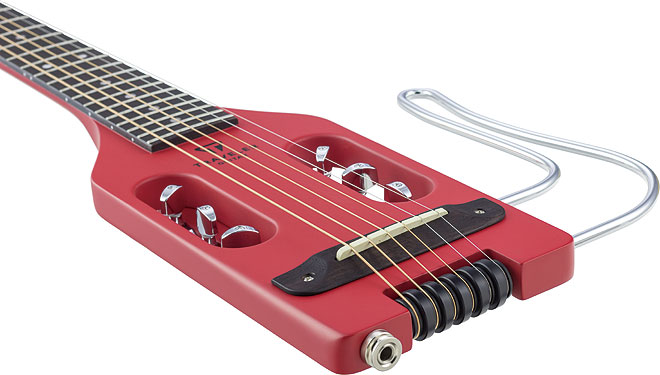 座って演奏する際にひざの上にのせるためのラップレストは着脱式になっており、外せばさらにコンパクトに。ピエゾ・ピックアップ搭載したトラベル・エレクトリックギターで、ボディ・エンド側にあるアウトプット・ジャックからアンプへの出力が可能。手持ちの外部ギター・アンプなどに接続することで、通常のエレクトリック・アコースティック・ギターとして使用可能。スケールは24 3/4インチ、22フレット採用で、ミニギターとは異なり、違和感なく演奏ができる。またギグバッグが付属、どこへでも気軽に持ち運べ、演奏が楽しめる。