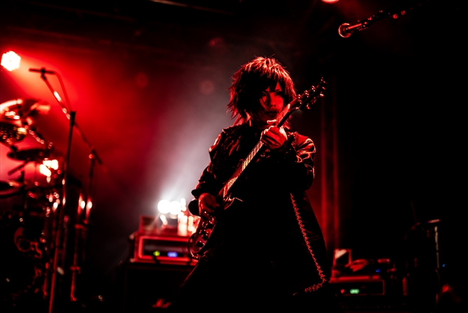 また、「浪漫地下室」といったアッパーな楽曲では、Z(G)と楓(G)のハモリが見事な見せ場となっていた。後に続いた「拝啓、薔薇色な日々よ」では曲が始まった瞬間からフロアが感情を一気に爆発させる。その様子をセンターで観ながら舌をペロッと出して毒付いた表情で笑うマモ(Vo)。言葉ではなく表情で観客を煽るあたり、表現者としての成長が伺える。