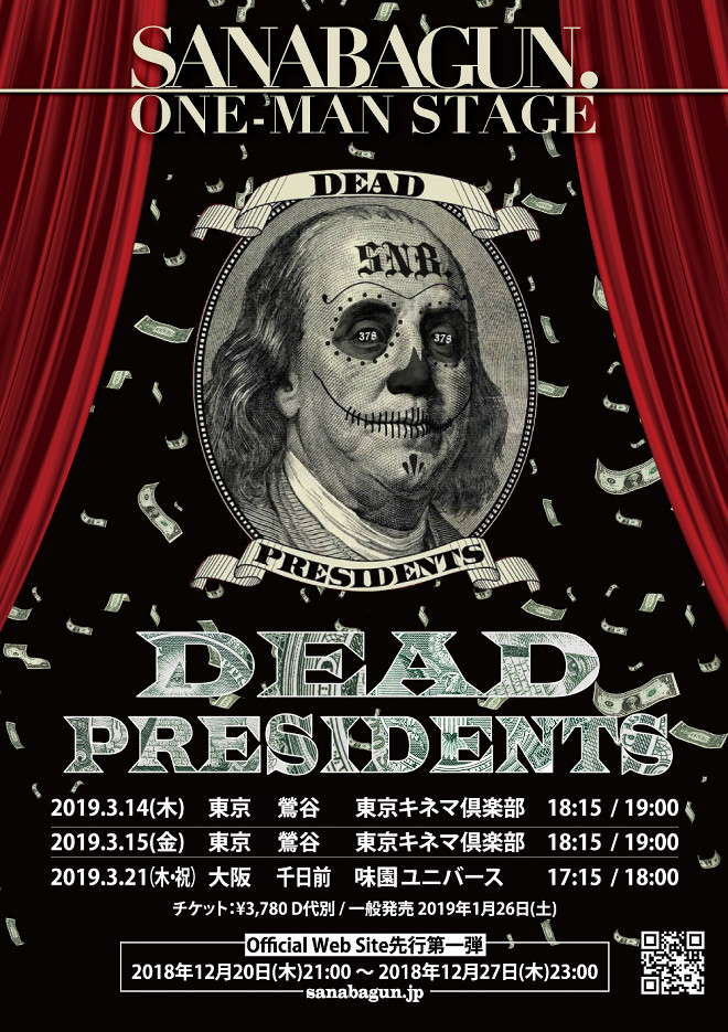 SANABAGUN.が、2019年3月に東京と大阪でワンマンライブ<DEAD PRESIDENTS>を開催することが発表された。
