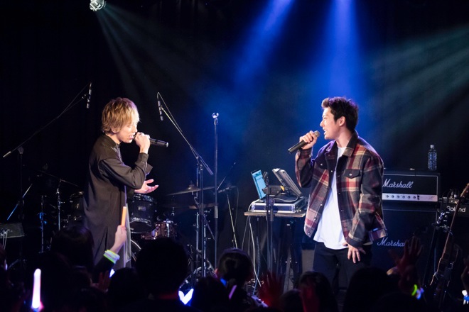 三人だけのパートが終わると、ステージにFümiひとりだけが残り、ゲスト出演が告知されていたYouTubeチャンネル登録者206万人のYouTuber おるたなChannelの“ないとー”を呼び込む。その登場が再び会場に熱気を運んで後半戦がスタート。“ないとー”が作詞、Fümiが作曲したナンバー「28」を、この日は特別にコラボレーションバージョンで披露。ステージ初共演となった彼らは、終始アイコンタクトを取りながら気持ち良さそうに歌い上げ、本人同士がこのステージを一番喜んでいる感じが伝わってきた。続いて、再びバンドとメンバーが揃い、“ないとー”が敬愛するBUMP OF CHICKENの「プラネタリウム」へ。“ないとー”の歌声と二人の仲睦まじいMCで会場の空気も大いに和んだ。